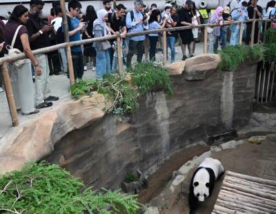 大熊猫“辰星”“晓月”10日在马来西亚国家动物园大熊猫保护中心正式与马来西亚公众见面。两只憨态可掬的大熊猫吸引众多民众前来参观,现场气氛热烈。