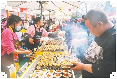 丰都庙会现场,游客品尝美食。孙茂林摄