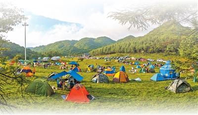 丰都天湖草场露营基地,彩色帐篷点缀其间。陈 勇摄