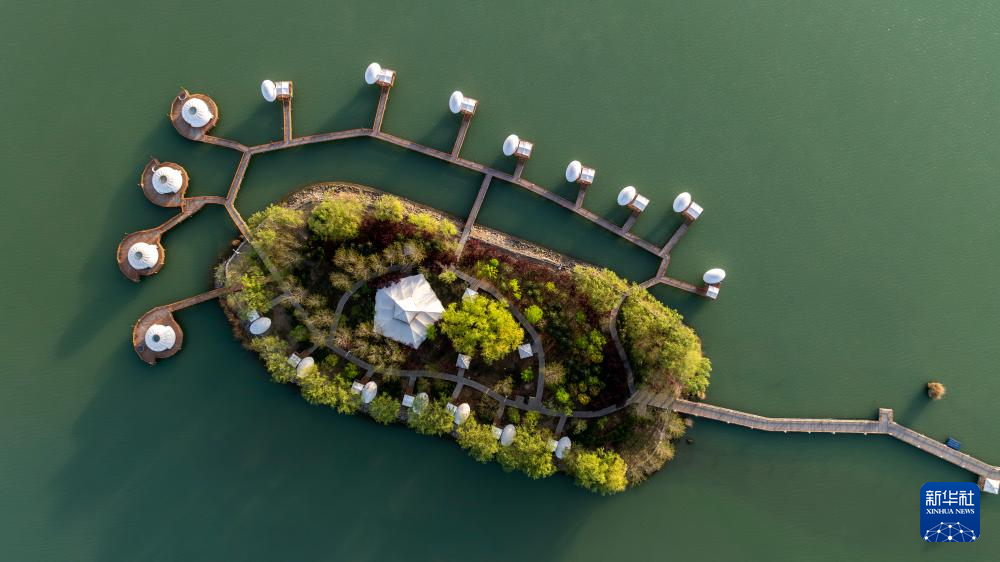 这是4月18日拍摄的沙湖湖心岛(无人机照片)。