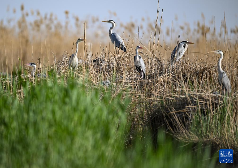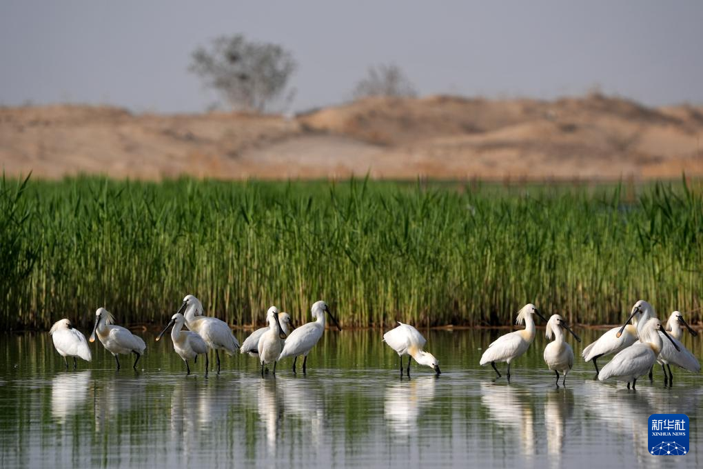 暮春时节,在位于宁夏石嘴山市的宁夏沙湖景区,湖面芦苇新芽初绽,候鸟在此筑巢栖息,绘就一幅“沙水相依、塞上江南”的春日生态画卷。