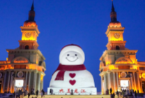 位于哈尔滨市群力音乐公园的大雪人吸引着众多游客前来打卡。日落后的蓝调时刻,在天光与灯光的交相映照下,大雪人更显浪漫迷人。